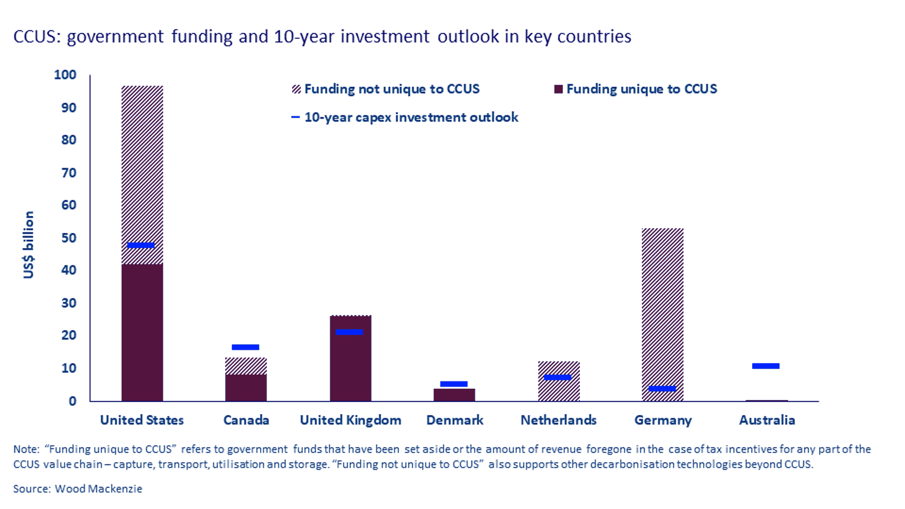CCUS: a US$196 billion global opportunity over the next decade – government support in key countries amounts to US$80 billion