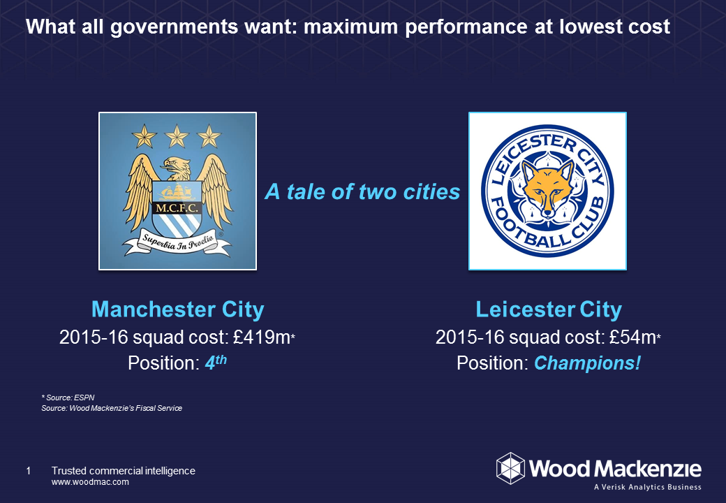Leicester City have won the English Premier League, against all the odds and with an eighth of the budget of the pre-season favourites, Manchester City. I link this 'tale of the unexpected' to one of the strongest emerging trends in petroleum fiscal policy today: reducing cost recovery. Governments are telling the oil companies that they need to 'do a Leicester'. That is, maintain (or even improve on) their best performance – investment, production – but at a fraction of the cost.