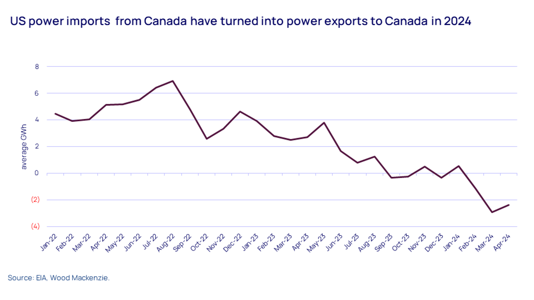 Summer to date, the reversal of power flows to Canada accounts for 40% of the year-over-year increase in demand for US power generation.