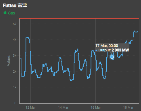 Kawamata said: “Following the earthquake, 6.5 GW thermal power plants including large-size coal and gas plants have been shut down. This led to blackouts for 2.2 million households, and several areas in Tohoku are still suffering blackouts currently. Today’s reserve margin in Tohoku was constantly at around 3% during the day.