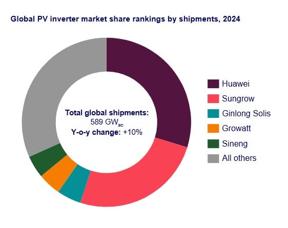 Global PV inverter shipments grew by 10% in 2024 to 589 GWac