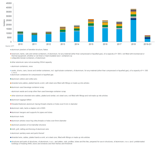 "The latest increase in U.S. tariffs on Chinese goods is a modification to the original 21st September introduction of a 10% tariff on $200 billion worth of Chinese goods. For aluminium and aluminium-contained products, the new tariffs represent more of the same, but at a higher pain threshold for U.S. consumers. For direct aluminium semi-fabricated products, such as sheet, China has been busy redirecting exports to other markets since the introduction of Section 232 and duties on common alloy and foil products. Chinese exporters of semis have also been granted exemptions to the tariffs.